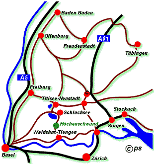 Ausflugsziele in der UmgebungFür Ihre Ausflüge ist Höchenschwand ein Idealer Ausgangspunkt. In ca. 1 Stunde erreicht man Zürich, Basel, Freiburg, Elsass, den Rheinfall in Schaffhausen oder den Bodensee mit der Inser Mainau. In ca. 30 Minuten erreicht man: Skiarena Feldberg mit 26 Liftanlagen und die Golfplätze Obere Alp und Rickenbach sowie den Titisee. In der Nähe: Kureinrichtungen, Hallenbäder, Saunen, Einkaufsmöglichkeiten. Ausserdem ein beheiztes Waldfreibad, alpiner Übungshang, Rodelbahn, Langlaufloipen und im Sportzentrum Höchenschwand 4 Sandfreiplätze, 3 Hallensandplätze. |